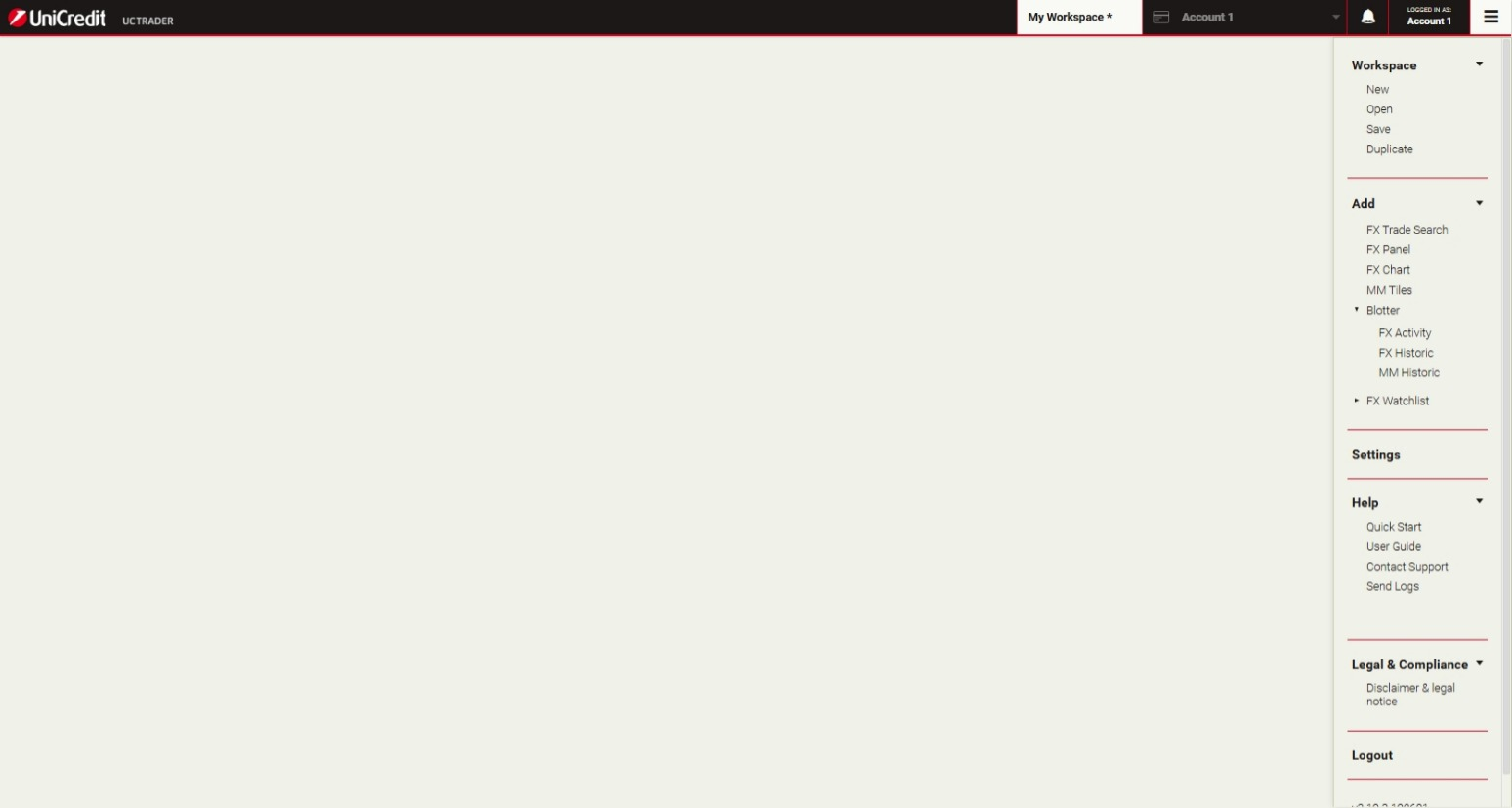 This is the default view of UCTrader. You can change its layout to suit your needs or create additional workspaces to group the information together. This section will show you how