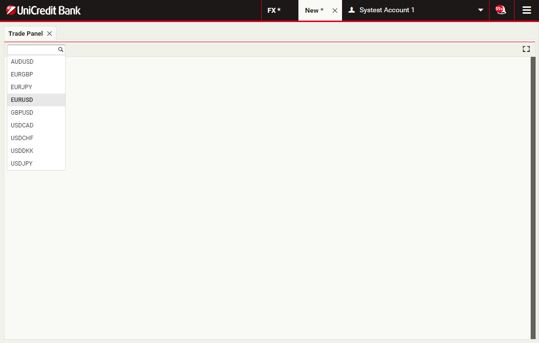 To add a trade tile to the trade panel, select a currency pair from the trade panel's currency-pair picker