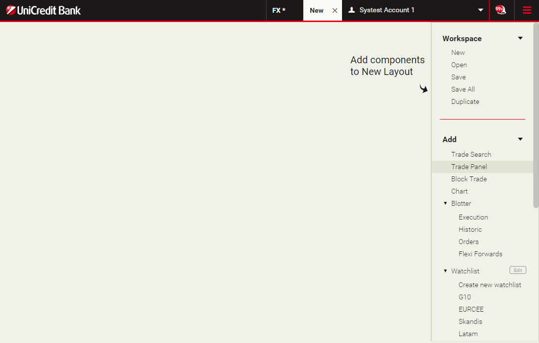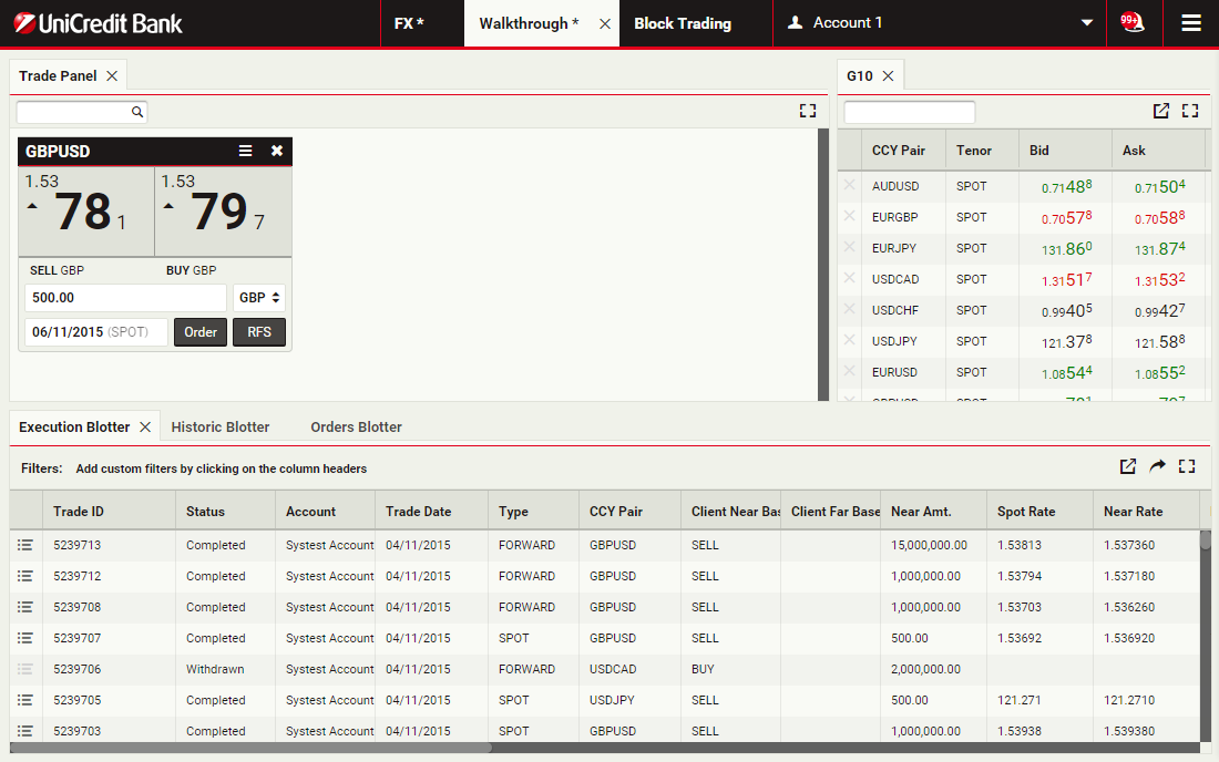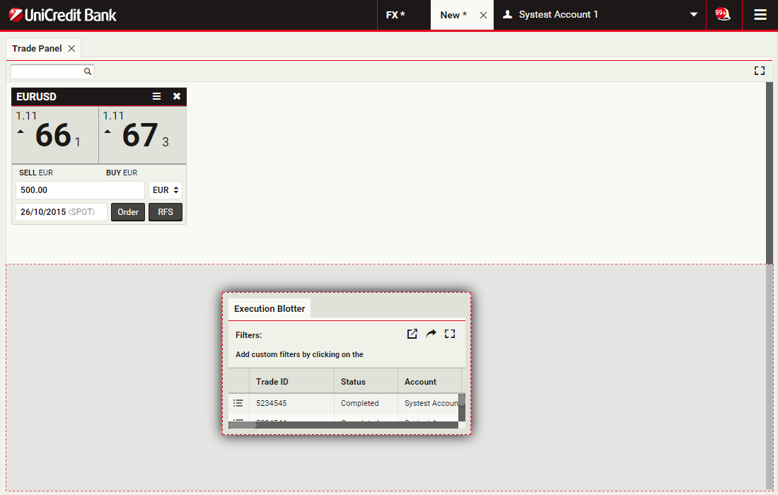 Trade panels contain trade tiles, which show prices and allow you to execute trades.
