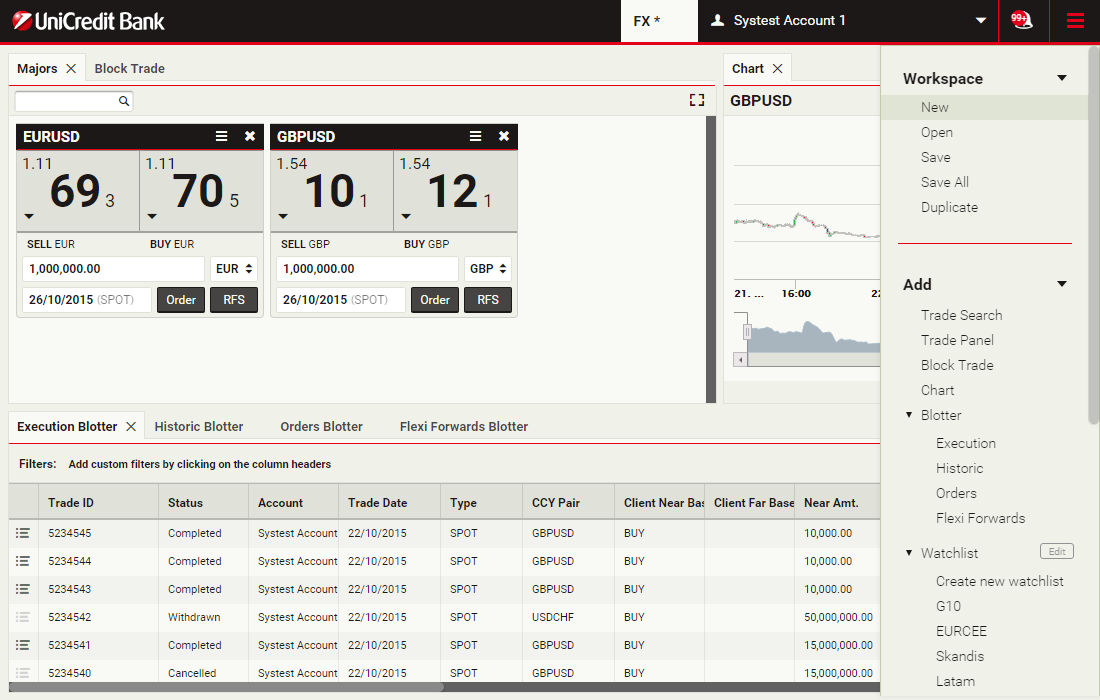 For the fastest possible execution, we offer one-click trading straight from the trading tile. Alternatively, we can offer double-click trading for added peace of mind. For more information or to request enablement of this feature, please contact your sales person